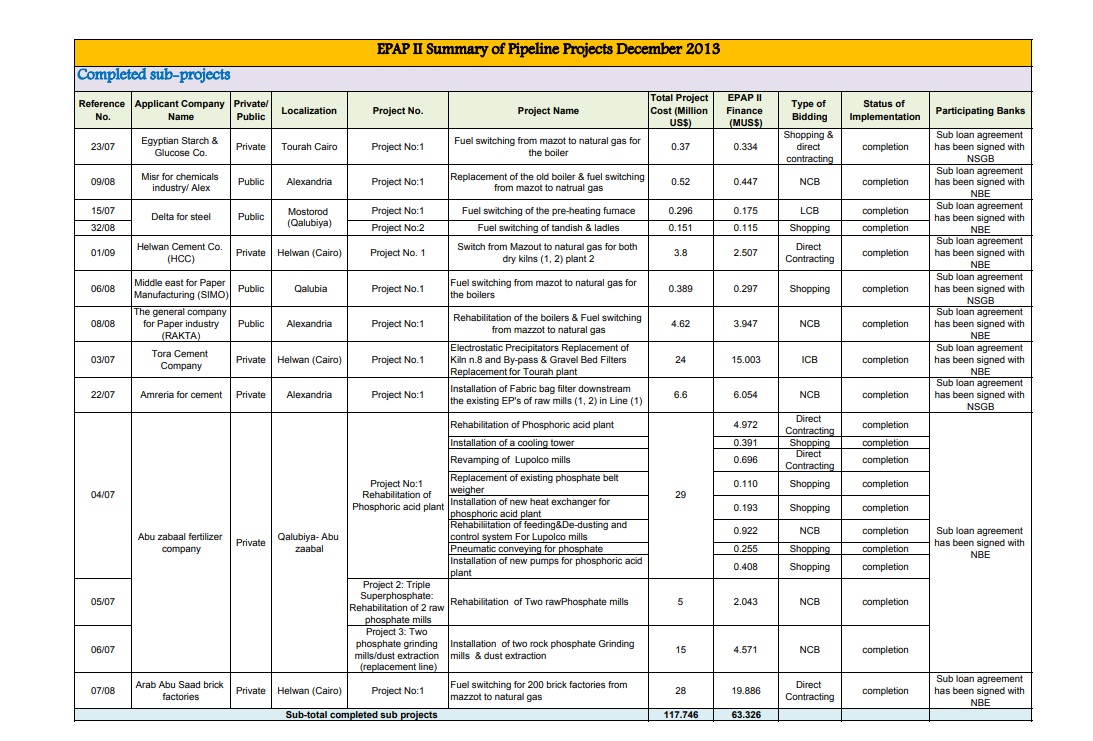 وفي كانون الثاني/يناير 2007، تقدّمت الشركة باستمارة مشاركة في المرحلة الثانية من مشروع “التحكم في التلوث الصناعي”.