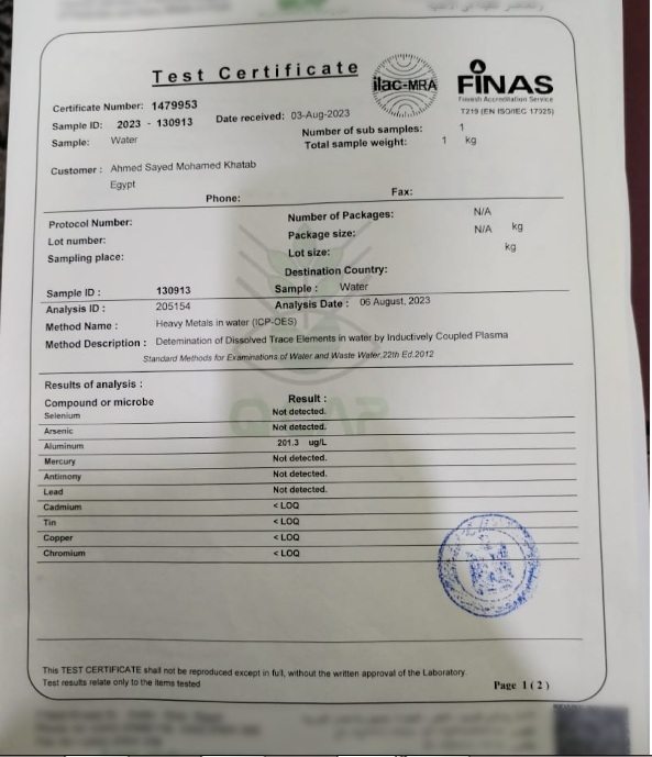 أظهرت النتائج وجود نسبة مرتفعة من عنصر الألومنيوم داخل مياه ترعة الإسماعيلية، تخطت 201 غرام/ لتر، وهي نسبة مرتفعة من شأنها أن تؤثر سلباً في نمو النباتات والمحاصيل الزراعية المختلفة.
