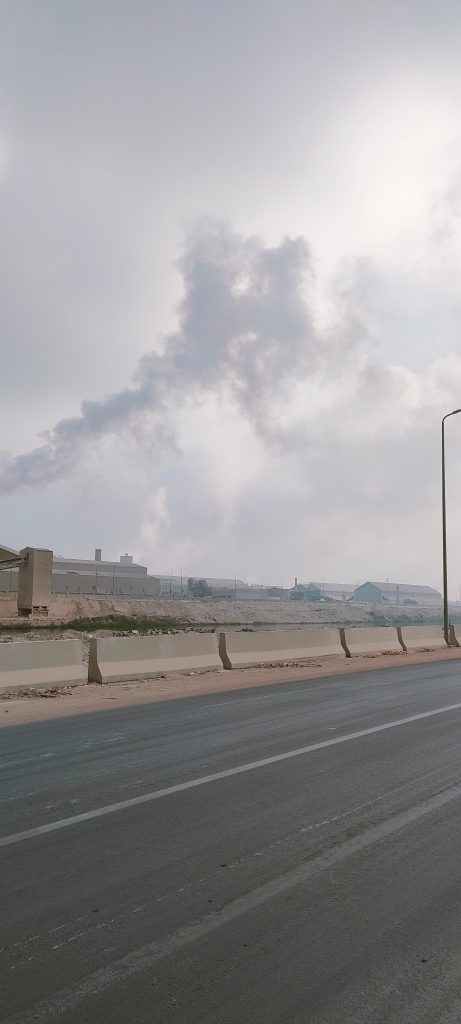 “عندما تعمل آلات المصنع، أهرول مسرعاً في الاتجاه المعاكس؛ في محاولة لالتقاط أنفاسي والبحث عن هواء غير محمّل بالغبار الأسود”، هكذا يصف محمود أبو عمر معاناته اليومية مع الانبعاثات الناتجة عن مصنع “أبو زعبل للأسمدة والمواد الكيماوية”.