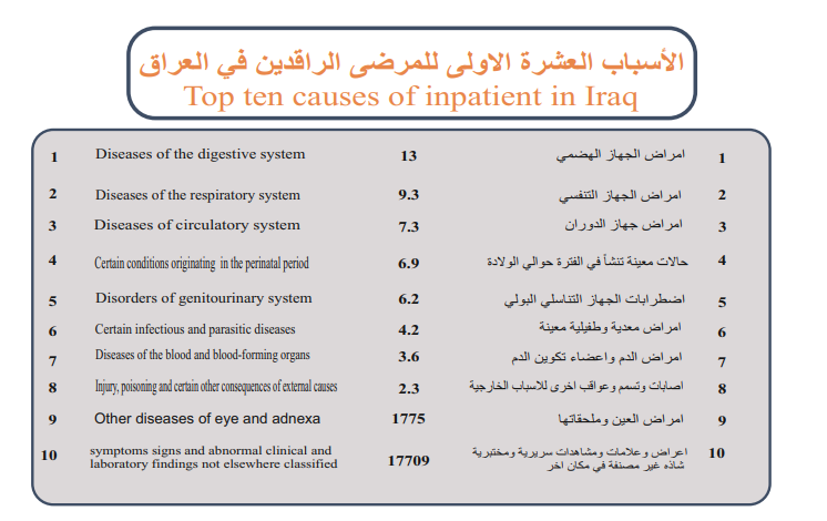 كما أن الأمراض التنفسية هي السبب الرئيس لمراجعة ردهات الطوارئ في عموم العراق. وهي ثاني سبب للرقود في المستشفى حسب إحصاءات وزارة الصحة العراقية.