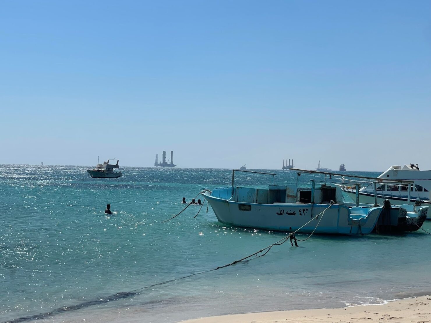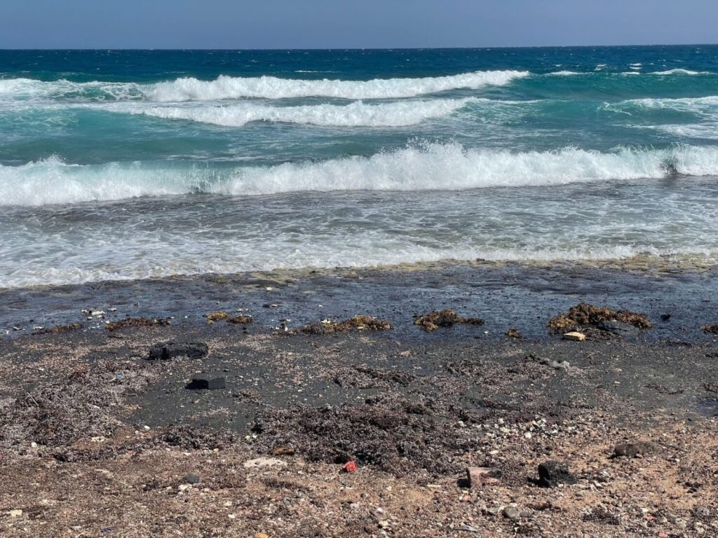 خلال جولة على الشاطئ، أشار عبد الحميد إلى نقاط سوداء: صخور ورمال تشربت بالزيت، وتلون أزرق/أسود في المياه الضحلة قرب الشط؛ “هذا السواد كان شعاباً صغيرة تحجرت بالزيت”. قرب مرسى قوارب صغيرة، تظهر منصات التنقيب في الأفق. “في رأس شقير الوضع متفاقم”. الوصول إلى منشآت رأس شقير يقتصر على العاملين ومفتشي البيئة والبترول، لكن تحليل صور أقمار صناعية أظهر مناطق التعدين وحساسيتها.