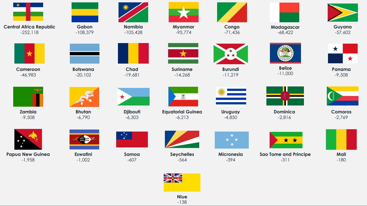 أي أن هذه الدول تزيل كمية من الكربون من الغلاف الجوي أكبر مما تطلقه، وليس مساوياً لما تطلقه كما هو الحال في “الصفر الصافي”.