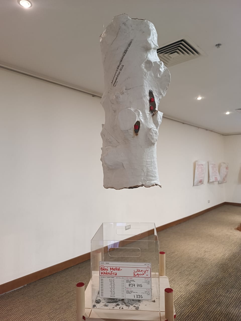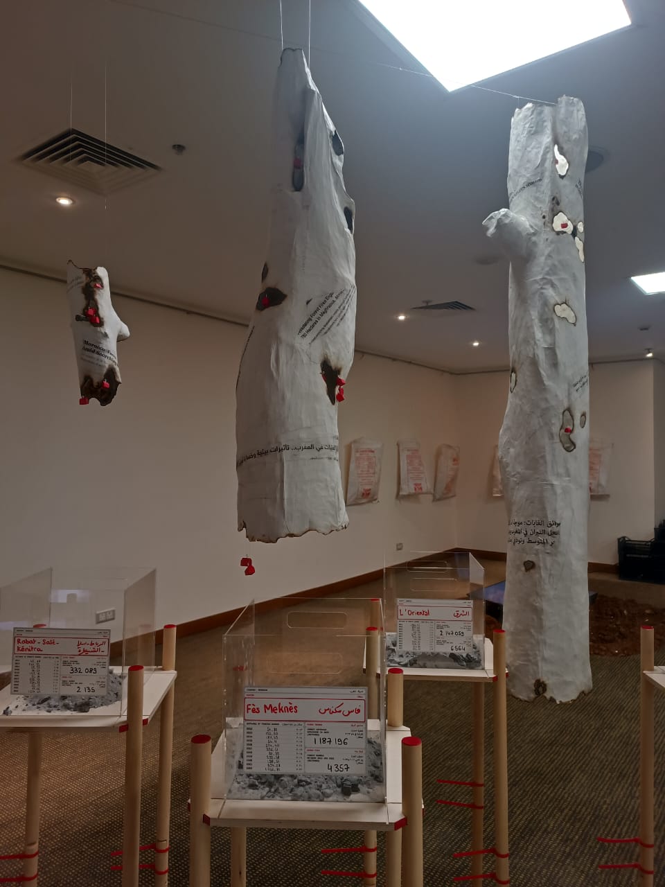 كما أوضح المعرض مدى تأثير الضرر الذي يحدثه الإنسان على هذه المساحات ويتم الحديث على أنها أضرار بسبب التغيرات المناخية، كما يحلل هذا التحقيق المدفوع بالبيانات، معلومات حرائق الغابات في المغرب والمناطق المتضررة من 2012 إلى 2022، ويدرس أسباب إندلاعها، تم عمل مجسمات حول المناطق المتضررة من المغرب، وأسفلها صندوق صغير فيه تفاصيل معلومات كل منطقة وبيانات الكوارث الحادثة بها.