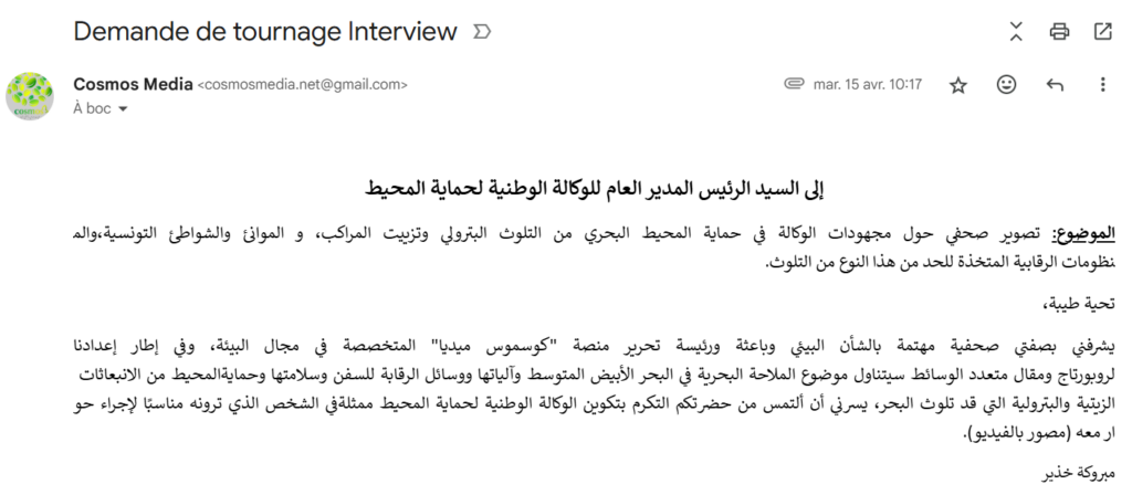والجدير بالذكر في هذا السياق انه وعلى مدى أسابيع من العمل على هذا التقرير، سعت كوسموس ميديا للتواصل مع الهياكل الرسمية بغاية الحصول على تفاصيل أوفى. غيّر أن الإدارات العمومية، بما فيها الوكالة الوطنية للتحكم في المحيط، لم تستجب لطلباتنا الرامية إلى توضيح الجهود التونسية المبذولة لحماية البحر والشواطئ من التلوث الزيتي.