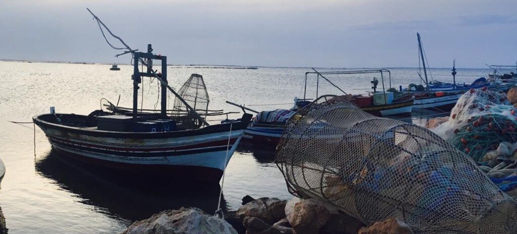 قادنا غسان الشّلي الى مربض صغير للقوارب الصغيرة في منطقة أولاد بوعلي من جزيرة قرقنة. يعتمد الكثير من سكان قرقنة على الصيد التقليدي. يواجه هؤلاء الصيادون صعوبات متزايدة بسبب تراجع الثروة السمكية وتأثيرات التغيرات المناخية على مناطق الصيد. غير ان أكثر ما يؤرق غسان الشلي هو مشكلة التّلوث بالنفايات البلاستيكية، حيث تقدّر كميات الفضلات البلاستيكية المتراكمة سنويًا بحوالي 7 آلاف طن.