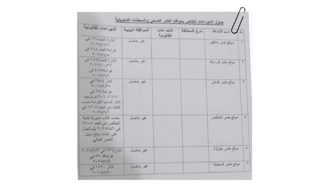 تُظهر الوثائق التي حصل عليها فريق التحقيق، تجاهلًا مستمرًا لقرارات الغرامة وأوامر الإغلاق، ما يطرح تساؤلات حول مدى قدرة الجهات التنفيذية على فرض القانون البيئي وحماية الصحة العامة.