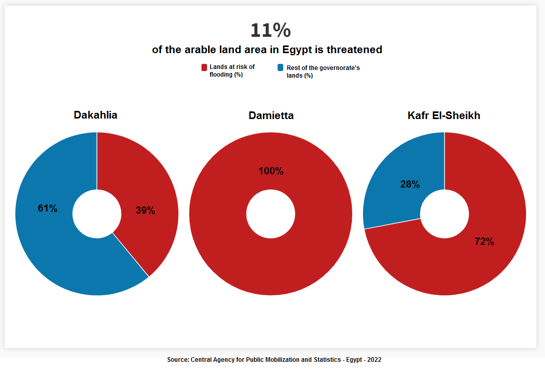 The combined area at risk is equivalent to more than half of the area of the three governorates, and approximately one third of the area of the Nile Delta region.