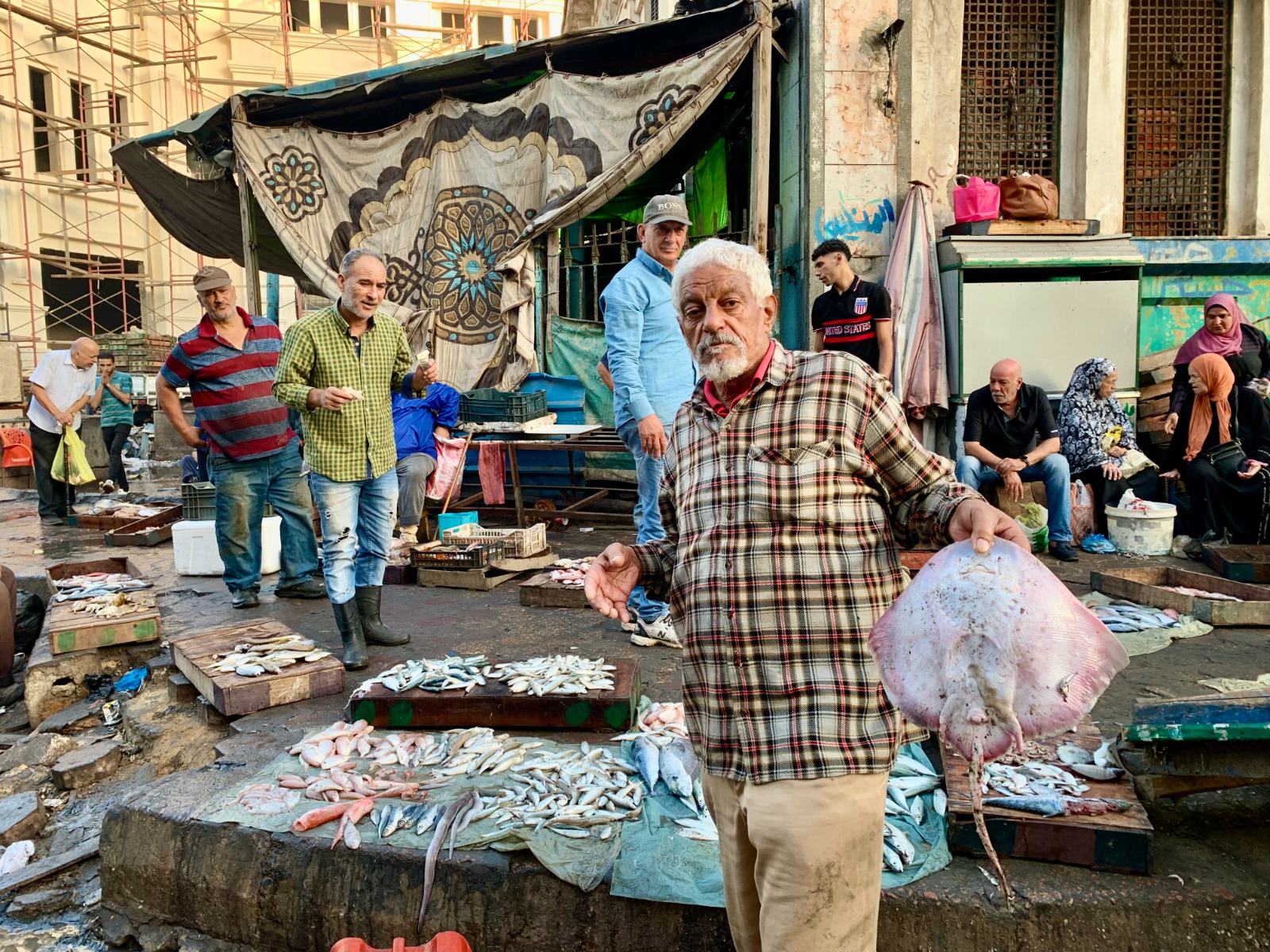 We met another fisherman – who refused to give his name – who was selling small rays among many other fish. He called them “muharat” and said that he sells them on a daily basis, and their weight ranges from one to five kilograms, and the price of a kilo ranges between 60 and 80 pounds.